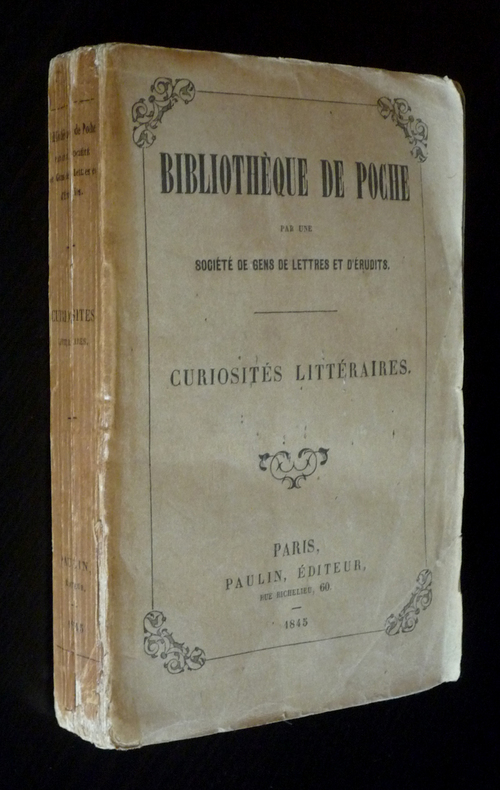 La Bibliothèque de poche se composait de 10 volumes, dont les "curiosités littéraires" était le premier vol. in-8, reliure demi cuir, 16x10, bon exemplaire, bien frais, 469pp. Paris, Paulin, 1854 ref/254