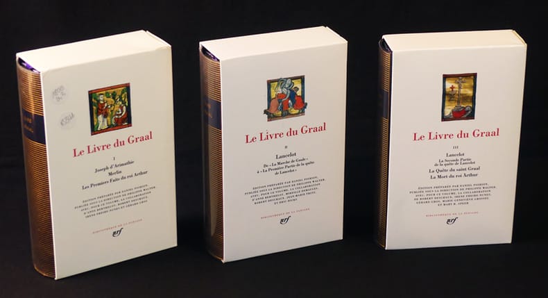 Gallimard Bibliothèque de la Pléiade Reliure d'éditeur Trois volumes in-12 (11 x 18 cm), reliure pleine peau de l'éditeur sous rhodoïd et emboîtages imprimés, édition préparée par Daniel Poirion, Tome 1 (imprimé en 2009, LXXV-1918 pp.) : Joseph d'Arimathie - Merlin - Les Premiers Faits du roi Arthur // Tome 2 (imp. 2003, XIII-1967 pp. : Lancelot - La Marche de Gaule - Galehaut - La Première Partie de la quête de Lancelot // Tome 3 (imp. 2009, XIII-1707 pp.) : Lancelot - La Seconde Partie de la quête de Lancelot - La Quête du Saint Graal - La Mort du roi Arthur ; très bon état général. Livraison a domicile (La Poste) ou en Mondial Relay sur simple demande.