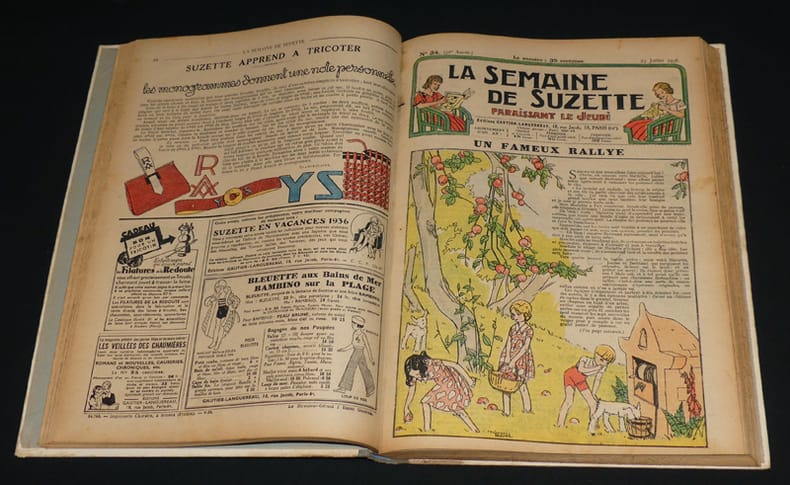 1 vol. in-4 reliure demi-toile noire, dos muet, , et l'intégralité des épisodes de "Bécassine à Clocher-les-Bécasses ". La Semaine de Suzette. Trente-Deuxième Année (Premier Semestre - Deuxième Semestre : 31e Année Complète. Du N° 1 du 6 décembre 1934 au n° 52 du 28 novembre 1935 ), 320 et 312 pp.