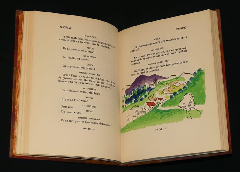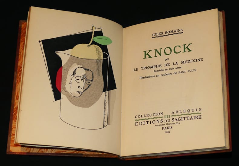 13 X 21 cm., agrafé, une vingtaine de feuillets non chiffrés. Programme du théâtre, avec Louis Jouvet dans le rôle de Knock, également metteur en scène et décorateur. Photos d'acteurs, textes relatifs à la pièce, publicités. On y joint deux places, pour le 27 novembre 1947, et le 29 janvier 1949. Rare et en bon état.