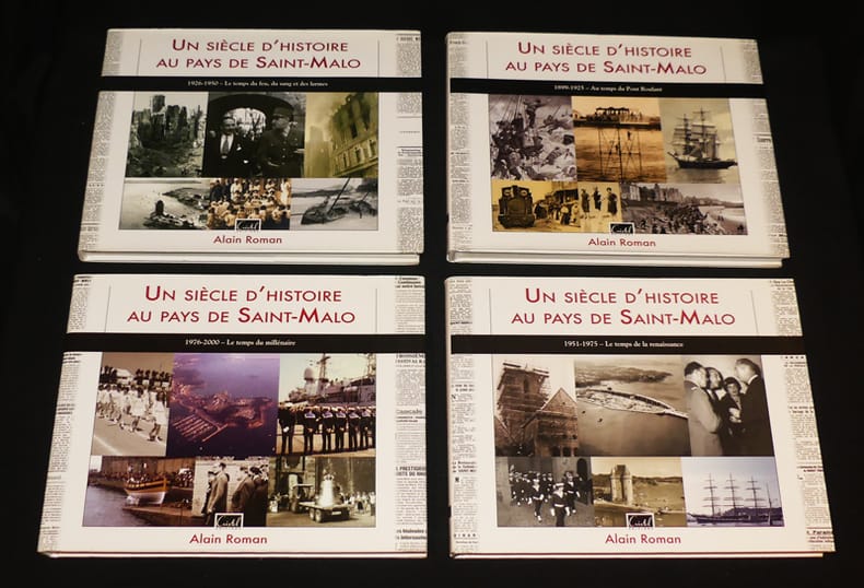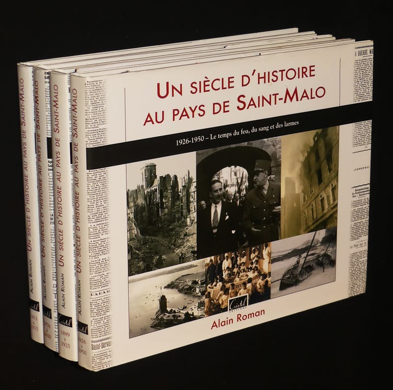 Editions Cristel Mémoire de Bretagne Cartonné avec jaquette 2012 Quatre volumes in-4 (28,6 x 22 cm), cartonnés avec jaquette, imprimés 2012-2016, Tome 1 : 1899-1925 - Au temps du Pont Roulant (171 pp.) // Tome 2 : 1926-1950 - Le temps du feu, du sang et des larme (171 pp.)s // Tome 3 : 1951-1975 - Le temps de la renaissance ( 185 pp.)//Tome 4 : 1976-2000 - Le temps du millénaire (185 pp.), envoi de l'auteur ; très menus défauts, bel ensemble. Livraison a domicile (La Poste) ou en Mondial Relay sur simple demande.