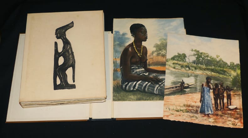 Tirage limité à 445 ex. Un des 45 exemplaires d'artiste celui-ci n° IV, numérotés sur Arches avec l'état définitif en couleurs.18 gouaches dont 1 frontispice de Paul-Emile BECAT gravées par Louis MACCARD, 13 lettrines et 10 culs-de-lampe de Marie MONNIER. " René Maran, administrateur colonial, reçut le prix Goncourt avec " Batouala " en 1921 et fut obligé de démissionner quelques mois plus tard, de son poste d'administrateur en Oubangui ". Belles Illustrations en adéquation avec le texte. BEL EXEMPLAIRE. Photos sur demande.