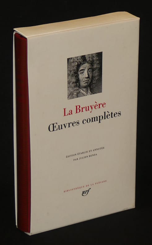 Gallimard Bibliothèque de la Pléiade Reliure d'éditeur 1993 In-12 (11 x 17,5 cm), reliure d'éditeur pleine peau sous rhodoïd et emboîtage illustré, XXVII-739 pages, préface, variantes, notes, bibliographie par Julien Benda, ce volume contient : Les Caractères de Théophraste - Les Caractères ou les mœurs de ce siècle - Discours prononcé dans l'Académie française - Dialogues sur le Quiétisme - Lettres à Condé, à Ménage, à Bussy, à Santeul, à Le Vayer, à Jérôme Phélypeaux ; bel état. Livraison a domicile (La Poste) ou en Mondial Relay sur simple demande.