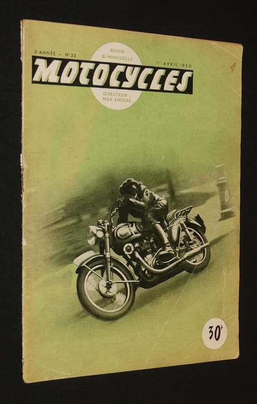 Motocycles Broché 1950 In-4 (21x27 cm), broché, 1er plat illustré, Motocycles n°33, 1er avril 1950 (3e année), 24 pages, illustrations et photographies noir et blanc dans le texte ; dos frotté et fendu par endroits, en particulier aux coiffes, pliures et une trace de stylo rouge sur le 1er plat, état correct. Livraison a domicile (La Poste) ou en Mondial Relay sur simple demande.