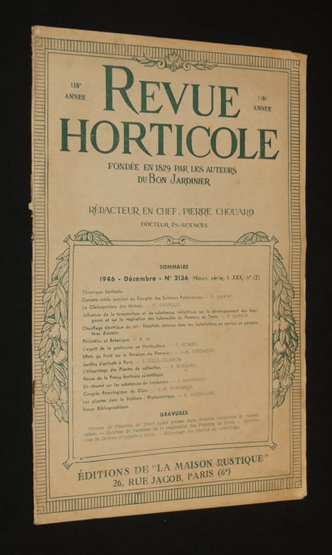 Editions de la maison rustique Revue horticole Brochure 1946 In-4 (18.5x27 cm), brochure, 186 à 199 pp., n°2136 de la 'Revue horticole', décembre 1946 ; dos déchiré à une agrafe, coiffes frottées, pâles rousseurs sur les plats, il manque en partie le 4e plat (scotch), état correct. Livraison a domicile (La Poste) ou en Mondial Relay sur simple demande.