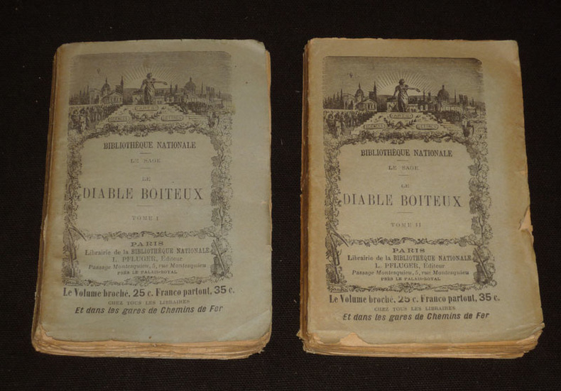 Paris, Alphonse Lemerre 1878, 1878, 1879, 155x90mm, frontispices, broché. Couverture à rabats. Dos des tomes de Gil Blas de Santillane I et IV fendus, tome III couvertures et dos empoussièrés, tome II en bon état. Dos du tome I de Le Diable boiteux fendus, tome II en bon état. Volume du théâtre dos fendu avec couvertures et dos empoussièrés. Intérieurs propres sur tous les sept volumes.