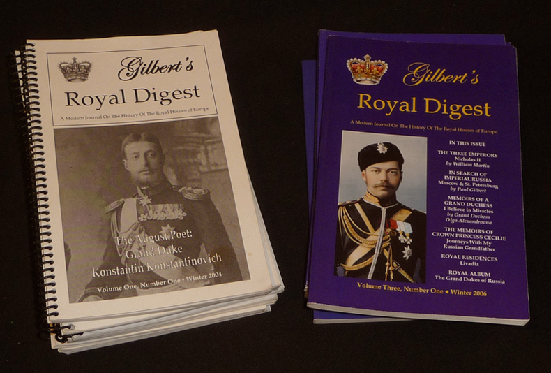 Gilbert's Royal Books Revue "In-8 (14 x 21,5 cm), 7 volumes à reliure spirale et 5 volumes dos carré collé, lot de 13 numéros du ""Gilbert's Royal Digest"" : Vol.1, n°1 à 4 (année 2004) / Vol.2, n°1 à 4 (année 2005) / Vol.3, n°1 et 4 (Winter & Fall 2006) / Vol.4, n°2 et 4 (2007) / Vol.5, n°1 (2008) ; quelques petites marques d'usage sur les plats et dos des volumes dos carré collé, trace au premier plat du Vol.1 n°1, par ailleurs bon état. Livraison a domicile (La Poste) ou en Mondial Relay sur simple demande."