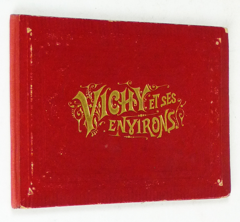 Vichy et Cusset, Bougarel Fils, sd. [1858] ; in-8, oblong (19,5 x 27,5 cm). Faux-titre - titre lithographié-titre typo.-40pp.-25 planches lithographiées en deux tons hors-texte. Pleine percaline brune, titre estampé sur le plat sup. (traces de dorures). Tranches dorées. Légère mouillure marginale sur les 4 derniers feuillets. Bel exemplaire presque exempt de rousseurs.