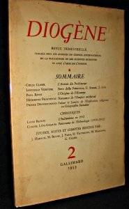 Sommaire : Dante et son temps par G.A.Borgese - la formation de la cité grecque par Fritz Schachermeyer - l'esthétique et l'histoire par Gaëtan Picon - la passion des dieux dans la religion méditerranéenne par Momolina Marconi - rituel humain et communication animale par J.B.S. Haldane - problèmes actuels de l'histoire de l'art par André Chastel - après la disgrâce de Lyssenko par Stefan Kolar - lettre du rédacteur en chef sur le rôle de Diogène et les conditions d'un humanisme rénové. Classification Dewey : 70.49-Presse illustrée, magazines, revues