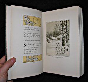Houghton, Mifflin and company Cartonné 1906 In-4 cartonné vert avec décor blanc, vert, rouge et doré sur le premier plat et le dos, tête dorée, 95 pp. sur papier couché fort, très belles illustrations deux couleurs dans le texte et couleurs hors-texte de Howard Pyle, John J. Enneking et Edmund H. Garrett ; coiffe inférieure à peine abimée, excellent état pour ce très beau livre. Livraison a domicile (La Poste) ou en Mondial Relay sur simple demande.