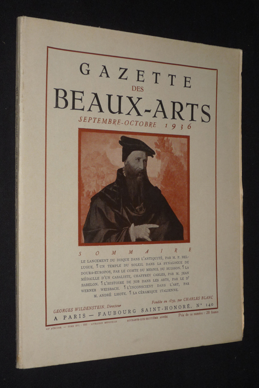 Gazette des Beaux-Arts Revue 1936 In-4 (23 x 28,5 cm), revue brochée, paginée de 70 à 139, illustrations en noir et blanc ; pliure au dos, reliure fragilisée (corps d'ouvrage un peu décollé de la couverture), assez bon état général. Livraison a domicile (La Poste) ou en Mondial Relay sur simple demande.