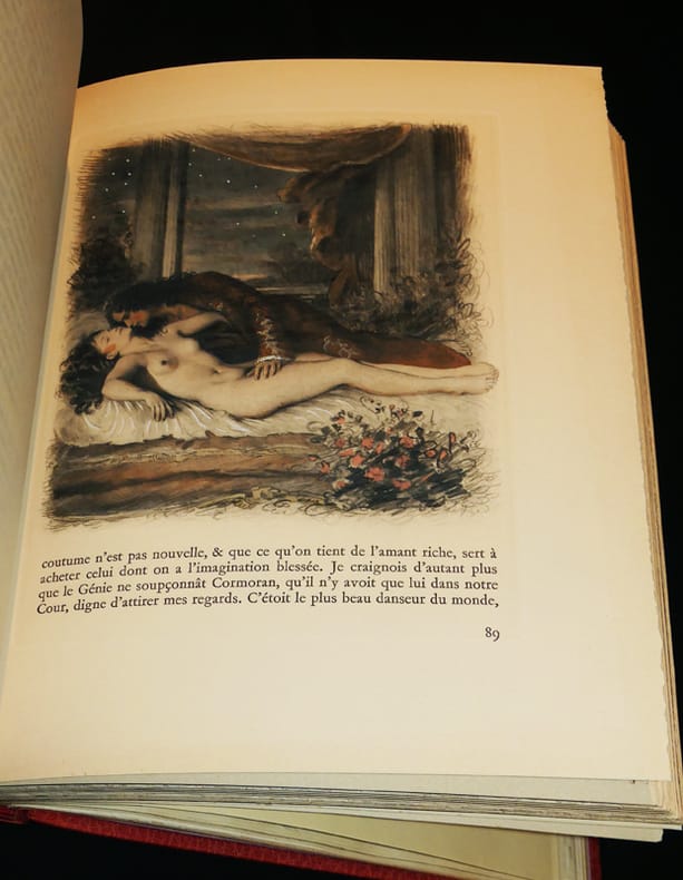 # AUTEUR: De Crébillon fils # ILLUSTRATEUR: Bécat Paul Emile # ÉDITEUR: Eryx - Paris # ANNÉE ÉDITION: 1950 # ENVOI, BEAUX PAPIERS: Vélin de Rives blanc à la forme # COUVERTURE: souple imprimée illustrée en couleurs - à rabats # DÉTAILS: In 4° en feuilles avec couverture à rabats sous chemise et étui de velours bleu: 166pp + 3ff. N° 17 des 15 exemplaires auxquels il a été ajouté un croquis original, la planches refusée en noir, une suite en noir mais sans la suite en sanguine. 2 autres planches refusées en noir et sanguine. Frontispice et 14 pointes sèches in texte en couleurs de Bécat. # PHOTOS visibles sur www.latourinfernal.com