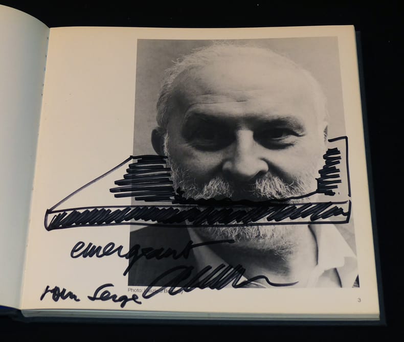 Lunds Konsthall, GKM Siwert Bergström Malmö Cartonné 1989 "In-8 carré (21,2 x 21,5 cm), cartonné toilé, titre doré au dos et au premier plat, 120 pages, nombreuses photographies en couleurs et en noir et blanc, tirage limité à 2500 exemplaires, le nôtre est DEDICACE PAR ARMAN (SIGNATURE et DESSIN ORIGINAL), mais également truffé d'une RARE INVITATION de la Galerie Piltzer à la double exposition ""Arman : Out of Africa"" / ""Walker Evans : African Negro Art"" présentée du 18 mars au 27 avril 1999 ; très bel état. Livraison a domicile (La Poste) ou en Mondial Relay sur simple demande."