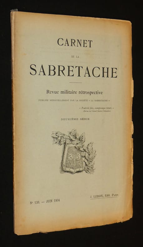 La Sabretache Carnet de la Sabretache Revue en brochure d'éditeur 1904 In-8 (16,5 x 25,5 cm), revue broché, 322 à 383 pages, n°138 de la revue mensuel militaire rétrospective 'Carnet de la Sabretache', juin 1904, deuxième série, 3 illustrations (dont 2 hors-texte dépliantes), une illustration N&B en frontispice, ouvrage collectif ; manques au dos insolé, manques aux coiffes, petites déchirures aux bords, intérieur frais, assez bon état. Livraison a domicile (La Poste) ou en Mondial Relay sur simple demande.
