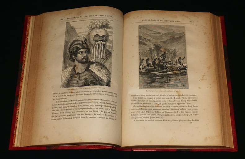 Hetzel J. et Cie Bibliothèque d'éducation et de récréation Relié RAREMENT COMPLET en trois volumes in-4 (18,5 x 28 cm.), relié demi-basane à coins, titre, auteur, tomaison et filets dorés sur le dos lisse, 1. Les premiers explorateurs 2.Les grands navigateurs du XVIIIe siècle 3.Les voyageurs du XIXe siècle, 464 / 464 / 428 pages, frontispice en noir et blanc, belles illustrations en noir et blanc dans le texte comprenant des dessins, des fac-similés de documents anciens et des cartes, sans date ; coins usés, bords un peu frottés, quelques épidermures au dos insolé, quelques rousseurs, assez bon état. Livraison a domicile (La Poste) ou en Mondial Relay sur simple demande.