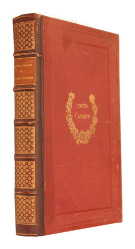 Charpentier Charpentier, 1876 - 1877. 3 volumes In-32 pour "Comédies et proverbes" d'Alfred de Musset. 493 pages, un portrait de l'auteur gravé par A. Leroy d'après Gavarni et une eau forte de Lalauze d'après Bida + 461 pages et un portrait de l'auteur gravé par A. Lamothe d'après le buste de Mezzara et une rau forte de Lalauze d'après Bida + 463 pages, portrait gravé par Monziès, une eau forte de M. Abot représetant le tombeau de Musset et une eau forte de Lalauze d'après Bida - Charpentier, 1878. Un volume In-32 pour "Contes choisis" d'Alphonse Daudet 497 pages, 2 eaux fortes par Edmond Morin - Charpentier, 1880. Un volume In-32 pour Renée Maupérin par E. et J. de Goncourt, 2 eaux fortes d'Edmond Morin. Le 5 volumes sont reliés à l'identique plein vélin crème, dos lisses très ornés d'entrelacs dorés, pièces de titres de cuir rouge, tranches rouges, gardes de papier marbré. Petit manque sans gravité à une pièce de titre. Le corps des ouvrages est en bon état, les eaux fortes et gravures de belles qualités. Ensemble charmant en reliure identique au format de 8 cm X 11cm. Bel état d'ensemble.
