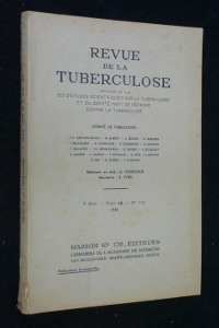 Masson et Cie Revue 1948 In-8, (24x16 cm), broché, paginé de la page 614 à la page 791 précédé d'un index bibliographique paginé en chiffres romains de XXXII à XXXV, revue de la Société d'études scientifiques sur la tuberculose et du comité national de défense contre la tuberculose, A. Courcoux rédacteur en chef, quelques illustrations en noir et blanc ; couverture légèrement piquée, déchirure sur le mors inférieur, dos légèrement décalé, assez bon état général. Livraison a domicile (La Poste) ou en Mondial Relay sur simple demande.