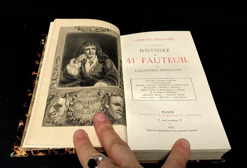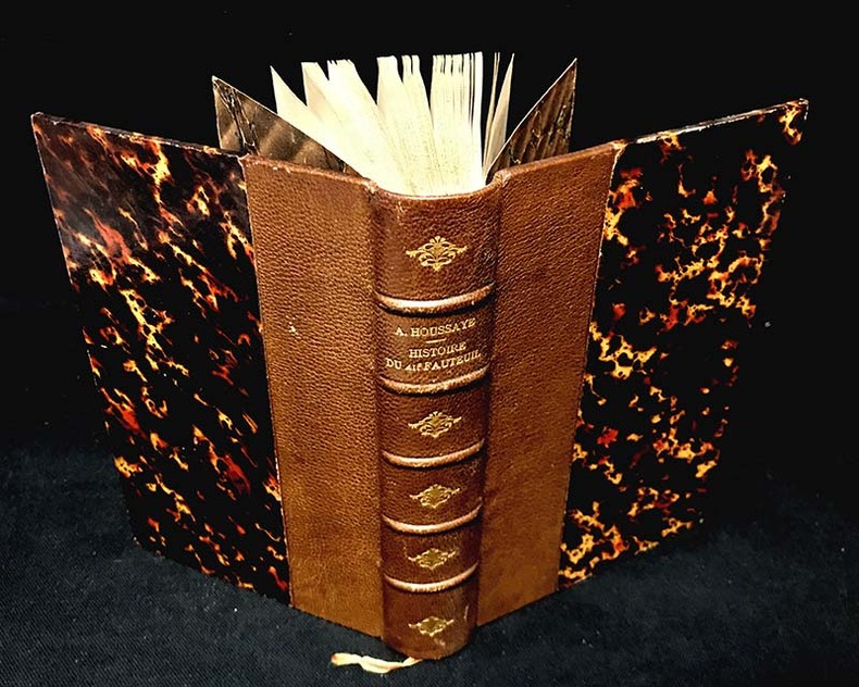 HISTOIRE DU 41e FAUTEUIL de L’ACADÉMIE FRANÇAISE Arsène Houssaye vol, relié in-8, 190x120, superbe reliure demi cuir, très bel état intérieur, 348pp Bien frais, très bel exemplaire, rare Paris Calmann Lévy 1884