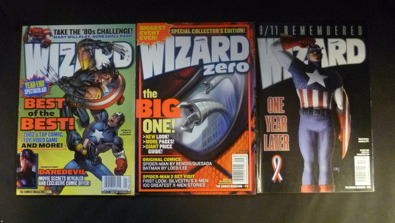 the comics magazine Revue Lot de 3 revues in-8 (18 x 26 cm) du magazine spécialisé en comics Wizard , les numéros 133 (168 pages, commémoration du 11 septembre 2001), 136 (184 pages), et le collector 0 (208 pages) ; étiquettes et pliures sur les plats, bel état général par ailleurs. Livraison a domicile (La Poste) ou en Mondial Relay sur simple demande.