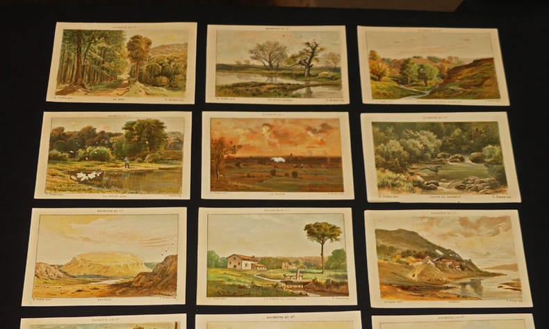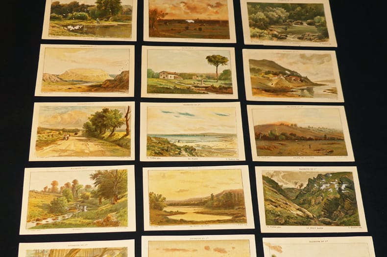 Hachette Topographie Bon point 1880 21 images en couleurs au format 12,5 x 9 cm., explication au dos, cette série de bons points contient les images suivantes : Le bois-Chute du ruisseau- Colline- Le petit Isthme- Plateau- L'embouchure du ruisseau- Confluent de deux ruisseaux- La route- La plage-La plaine- Source-La vanne du canal- Chaine de collines-Coteau-Le petit ravin-Le marécage-Le vallon-Ruisseau-Le petit détroit-l'ilot-La petite anse ; très menus défauts, bon état. Livraison a domicile (La Poste) ou en Mondial Relay sur simple demande.