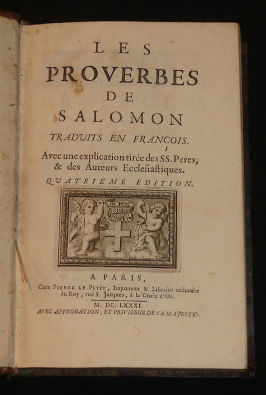 Pierrre Le Petit Relié 1681 Un volume in-8 relié (20 x 13 cm.), plein veau, reliure d'époque, dos richement décoré, 5 nerfs, roulettes sur les bords, quatrième édition, traduction de Le Maistre de Sacy, 24 ff. (p. de t.- préface-privilège-extrait des registres du conseil d'estat- approbations-table alphabétique des choses contenues)-783 pp. Bandeaux en tête des chapitres ; plats frottés et petits manques de cuir, petites usure des coins, coiffes bien présentes, bel exemplaire malgré ces petits défauts. Livraison a domicile (La Poste) ou en Mondial Relay sur simple demande.