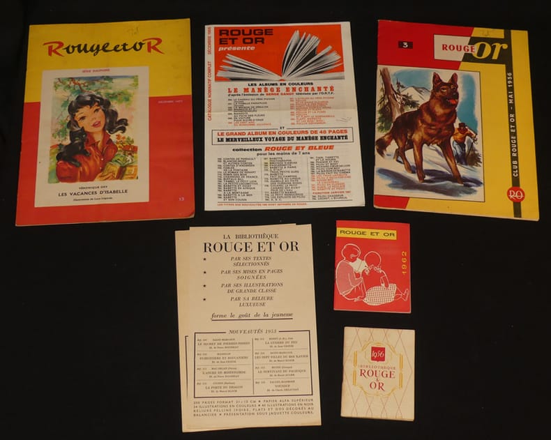 Editions G.P. Rouge et Or Catalogue 1956 Trois catalogues au format in-8, deux catalogues minuscules et deux feuillets de publicité, ce lot contient les catalogues de 1956 ( deux catalogues différents) - 1957-1962-1966-deux publicités de 1953 ; ensemble en bon état. Livraison a domicile (La Poste) ou en Mondial Relay sur simple demande.