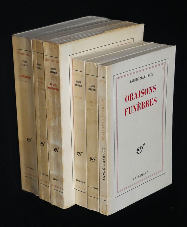Gallimard Broché 6 volumes brochés, 3 au format 18 x 12 cm. et 3 au format 21 x 14 cm., ce lot contient : Oraisons funèbres, 1971 - Hôtes de passage, 1975 - Lazare, 1974 - La Tête d'obsidienne, 1974 - L'Homme précaire et la littérature, 1977 - Antimémoires I, 1967 ; couvertures jaunies, intérieur frais, bon état. Livraison a domicile (La Poste) ou en Mondial Relay sur simple demande.