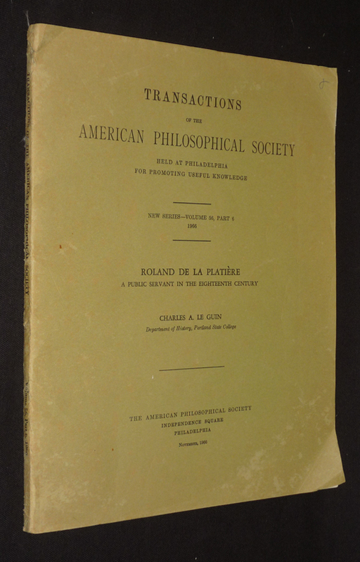 The American Philosophical Society Broché 1966 In-4 (23,5 x 30), broché, 129 pages, texte en anglais ; déchirure à la coiffe supérieure, coins cornés, quelques marques d'usage au premier plat, intérieur frais, assez bon état général. Livraison a domicile (La Poste) ou en Mondial Relay sur simple demande.