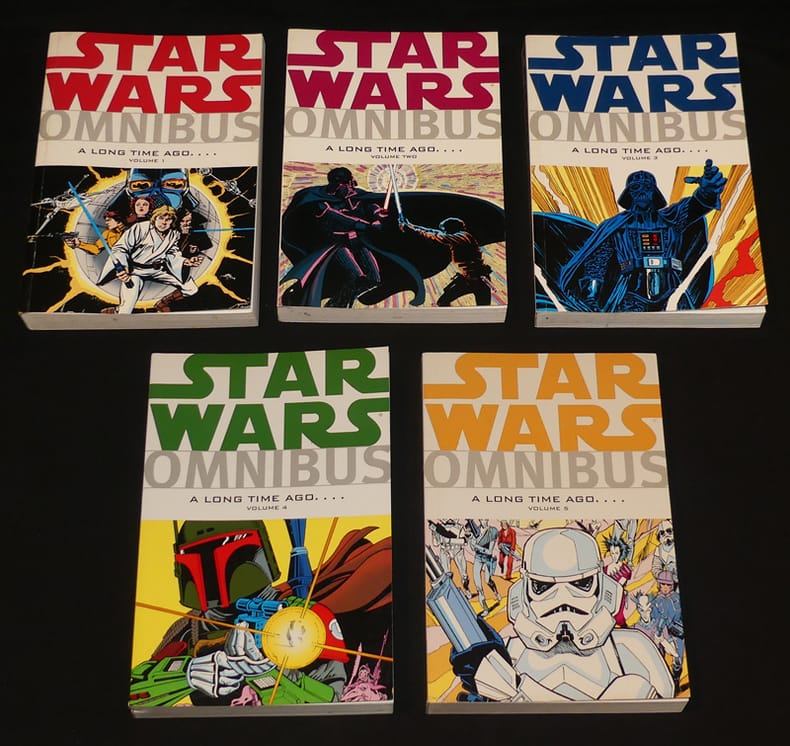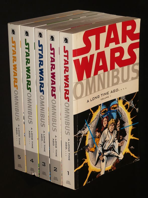 Dark Horse Books Album souple 2010 Cinq volumes in-8 (15,5 cm x 23,5 cm), albums brochés souples, couverture illustrée, 493, 464, 480, 572 et 568 pages, bande dessinée couleurs, texte en anglais ; tranches inférieures un peu salies, choc à la coiffe inférieure du volume 4, quelques rares résidus de papier là où certaines pages ont un peu adhéré entre elles, par ailleurs bel état général. Livraison a domicile (La Poste) ou en Mondial Relay sur simple demande.