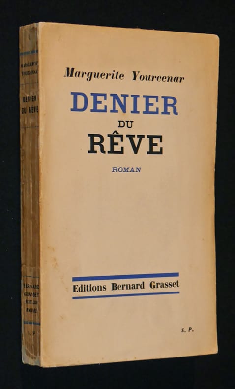 Editions Bernard Grasset Broché 1934 "TRES RARE EXEMPLAIRE DU SERVICE DE PRESSE, après les rarissimes 16 exemplaires sur grand papier. Cet exemplaire comporte un BEL ENVOI À FRANÇOIS-MARTIN SALVAT qui était directeur artistique aux éditions Bernard Grasset. L'envoi évoque la beauté de la couverture du livre qui a surement été réalisé sous la direction de Salvat : ""à François Salvat, ce livre qui en tout cas à quelque chose de parfait : sa couverture Marguerite Yourcenar."" in-12 broché, 235 pages ; exemplaire re-broché dans les règles de l'art (papier japon et colle poisson donc réversible), dos jauni et portant des marques de cassure, intérieur frais, bel état. Livraison a domicile (La Poste) ou en Mondial Relay sur simple demande."