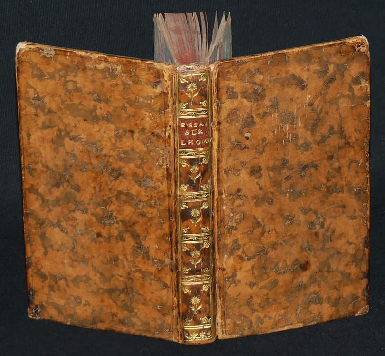 1 volume in-16° relié plein veau marbré noisette, filet doré sur les coupes, dos à nerfs décoré, 2 f, LIV, 244 p., petite galerie vers avec atteinte au cuir au plat supérieur seul vrai défaut de cet exemplaire par ailleurs en très bonné condition.