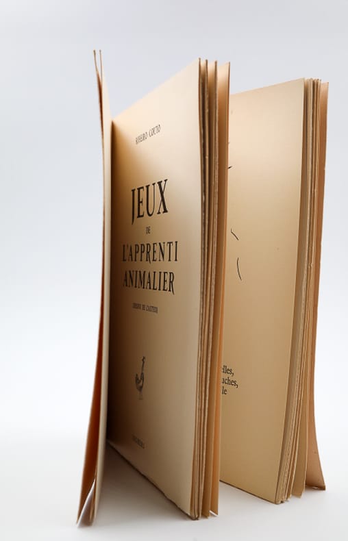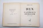 Pierre Seghers Broché 1955 RARE EXEMPLAIRE SIGNE SUR PUR FIL D'ARCHES. Jeux de l'apprenti animalier. Dessins de l'auteur. Grand in-8 (25x19 cm) broché, couverture illustrée, entièrement non coupé, 81 p., (4) p. d'index et de table. Tirage à 500 exemplaires sur pur fil d'Arches, exemplaire n°481 signé à l'encre par l'auteur, nombreux dessins de l'auteur dans le texte ; Très bel exemplaire, entièrement non coupé. Livraison a domicile (La Poste) ou en Mondial Relay sur simple demande.