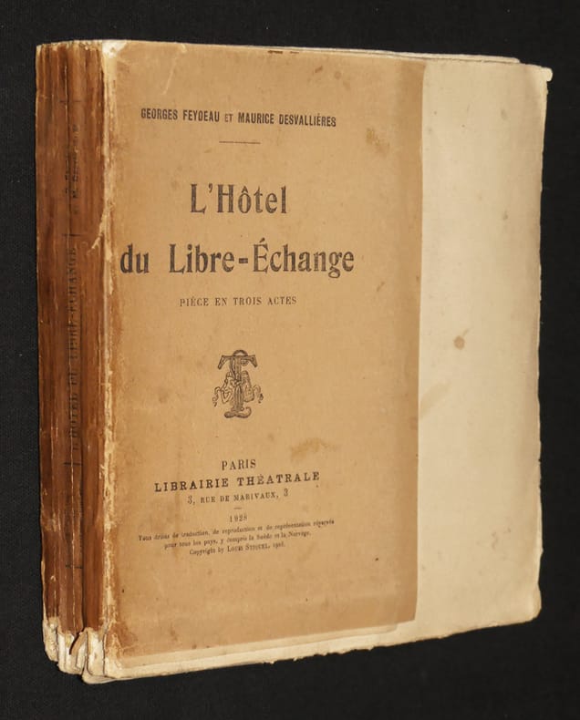 Paris, Librairie théatrale, 3, rue de Marivaux, 3 Broché 1928 Très rare exemplaire de tête de cette pièce de Georges Feydeau et Maurice Desvallières tiré à 25 exemplaires, ici le numéro 15, broché au format in-12° (13 * 19.5 cm), toutes marges, 220 pages ; couverture salie, intérieur frais, rare exemplaire à relier. Livraison a domicile (La Poste) ou en Mondial Relay sur simple demande.