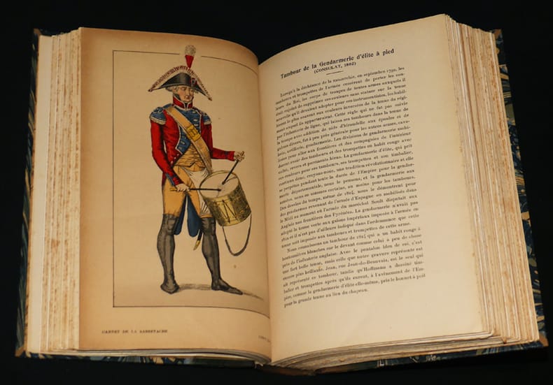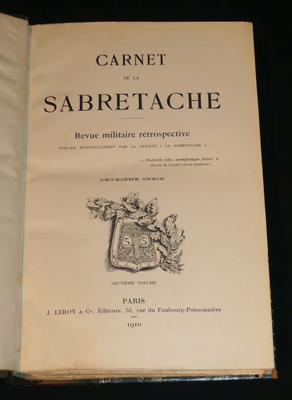 J. Leroy éditeur Revue relié 1910 Un fort volume in-8 relié demi basane verte, (17 * 25 cm) dos lisse, du numéro de janvier au numéro de décembre, bien complet de tous les hors-texte tel que décrit la table des illustrations, 795 pages. Le numéro 1 de cette revue fut imprimé en en janvier 1893, pour la plupart les articles traitent d'histoire militaire entre 1780 et 1870, on y trouve des récits de faits militaires, des biographies d'hommes de guerre, et entre autre des études sur les uniformes, les hors-texte couleurs sont réputés pour leur fidélité et leur qualité artistique. Le grand spécialiste de la peinture militaire qu'était Edouard Detaille fut le premier président de cette Société. Une mine d'informations ; quelques épidermures, dos insolé, intérieur très frais, bon état. Livraison a domicile (La Poste) ou en Mondial Relay sur simple demande.