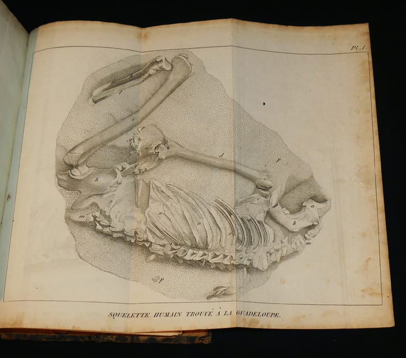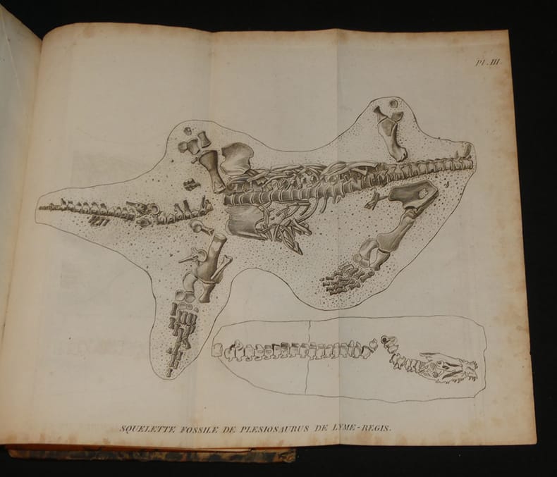 ---- BON EXEMPLAIRE AUGMENTE D'UN PORTRAIT DE GEORGES CUVIER ---- édition séparée de la troisième édition REVUE ET CORRIGEE par CUVIER du Discours sur les révolutions de la surface du globe à laquelle a, en outre, été AJOUTE UN PORTRAIT DE GEORGES CUVIER ---- EXEMPLAIRE DE FORMAT IN 4 destiné aux acquéreurs de la seconde édition des ossements fossiles afin que ces derniers ne "soient pas privés DES ADDITIONS ET CHANGEMENTS QUE M. LE BARON CUVIER VIENT DE FAIRE A SON DISCOURS PRELIMINAIRE" (Prospectus des éditeurs pour la troisième édition des ossements fossiles) ---- Ce discours, REVU ET CORRIGE PAR GEORGES CUVIER, parut pour la première fois, en guise d'introduction, dans la troisième édition des Recherches sur les ossements fossiles. Le tableau dépliant se trouvant à a page 254 des éditons séparés de format in 8 de cet ouvrage a été intégré dans le texte de cette édition aux pages 124 et 125 ---- Il existe deux états de cette première édition séparée, un de format in 8 et un autre, plus rare, de format in 4. C'est ce dernier que nous proposons ---- "Dans ce discours, CUVER expose ses idées sur les cataclysmes qui ont bouleversé la terre dans le passé, et en particulier sur le dernier, qui coïncide avec le déluge de la Bible. Ce discours a connu un grand succès". (En français dans le texte N° 224) ---- "The discours préliminaire to his Recherches sur les ossemens fossiles des quadrupèdes, printed separately under the title Discours sur les révolutions du globe, was in the style of Buffon's Epoques de la nature. This essay drew its inspiration from the geological concepts of Alexandre Brongniart". (DSB III) **6122/A5AR