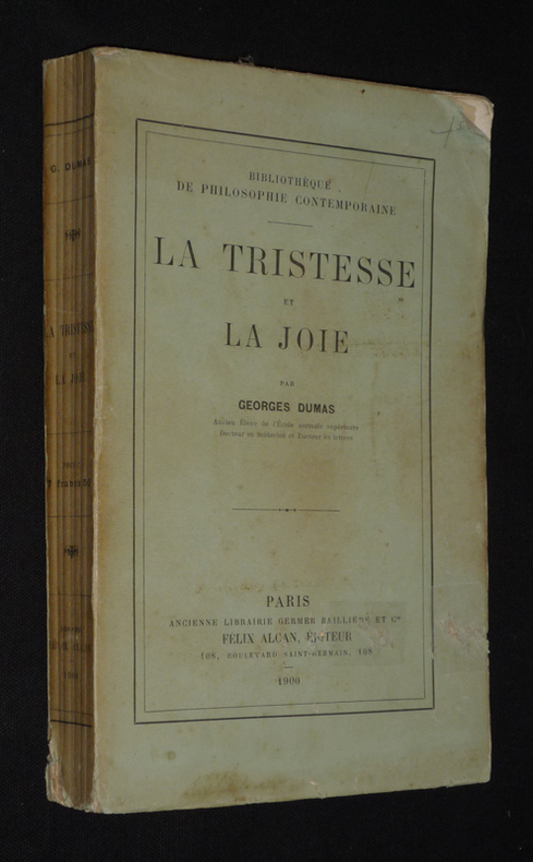 Ancienne Librairie Germer Baillière et Cie, Félix Alcan, Editeur Bibliothèque de philosophie contemporaine Broché 1900 In-8 (14,2 x 22,7 cm), broché, 426 pages ; manque au dos bruni en queue, petits trous au premier plat et aux premiers feuillets, brunissures e marques d'usage aux plats, en l'état. Livraison a domicile (La Poste) ou en Mondial Relay sur simple demande.