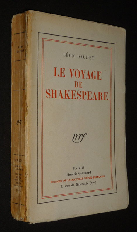 Réédition illustrée de ce roman publié en 1896 (G. Charpentier et E. Fasquelle; alors sous-titré "roman d'histoire et d'aventures") par Léon DAUDET (1867-1942), où l'écrivain, profitant du "vide" des années 1580 dans la biographie de Shakespeare, l'imagine voyageant en Europe du Nord au temps des guerres de religion; à noter quelques pages immondes où l'auteur se laisse aller à son antisémitisme délirant (passages supprimés dans certaines rééditions); illustrations de G. Goor: vignettes, 47 planches et une "carte" dépliante in-fine de l' "Itinéraire du voyage fait par Shakespeare en 1584". Tirage à 1680 exemplaires: 1 des 1400 sur alfa vélin, justifié n°1327; défectueux mais complet: à relier.