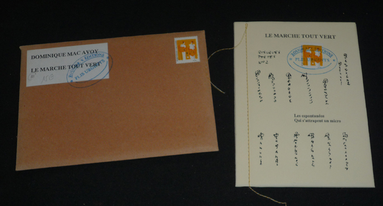 Rougier V. Editions Reliure à la japonaise 1993 In-12 (10,7 x 15 cm), reliure à la japonaise dans son enveloppe 16 x 11,5 cm, 21 pages + plaquette de timbres in fine, illustrations de Attia, Chopin, Ivan et Rougier ; bords de l'enveloppe un peu insolés, par ailleurs très bon état général. Livraison a domicile (La Poste) ou en Mondial Relay sur simple demande.