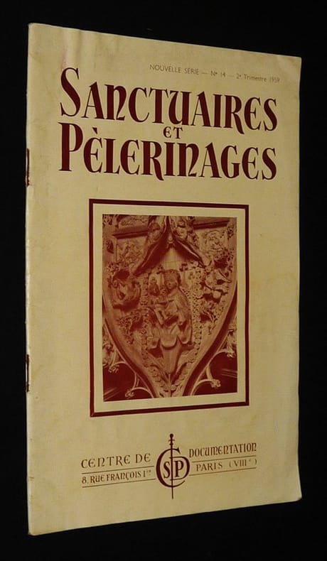 Centre de documentation des Sanctuaires et Pèlerinages Plaquette 1959 In-8 (15,6 x 23,5 cm), plaquette dos agrafé, 48 pages, illustrations en noir et blanc ; dos frotté, plats froissés, volume un peu gondolé en tête suite à une mouillure, état moyen. Livraison a domicile (La Poste) ou en Mondial Relay sur simple demande.