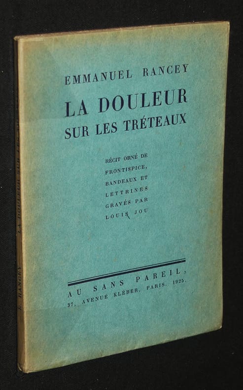 ed. Au sans pareil 1925 sous le pseudonyme d’Emmanuel RANCEY in-12 br., couverture rempliee, recit orne de frontispice, bandeaux et lettrines graves par Louis JOU, edition originale, ex. numerote sur velin Montgolfier d’Annonay, dos jauni