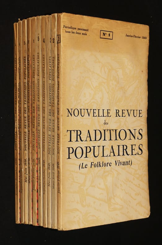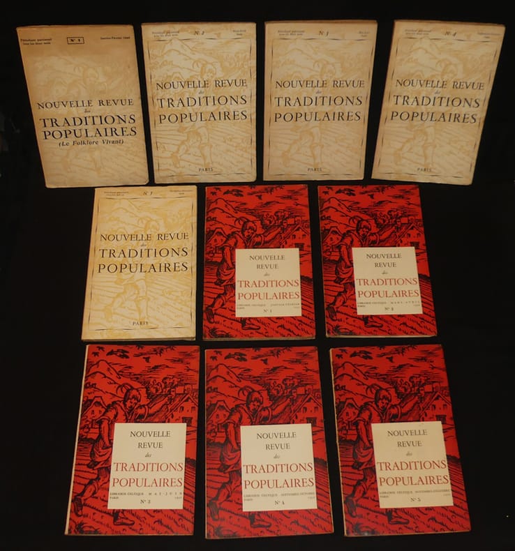 Librairie Celtique Revue 1949 Dix fascicules in-8 (14,5 x 23 cm), brochés, années 1949 et 1950 complètes de la Nouvelle revue des traditions populaires (Le folklore vivant) ; dos brunis, quelques rousseurs éparses, par ailleurs bon état. Livraison a domicile (La Poste) ou en Mondial Relay sur simple demande.