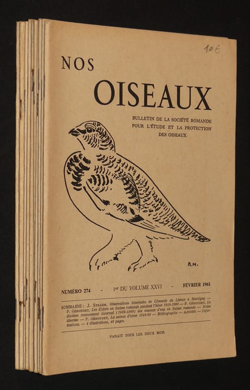 Société romande pour l'étude et la protection des oiseau Revue 1961 "In-8 (16,3 x 23 cm), dos agrafé, lot de 10 numéros de ""Nos Oiseau"", Bulletin de la Société romande pour l'étude et la protection des oiseaux"" : n°274 (février 1961) à n°280 (février 1962), n°282 (juin 1962), n°283-284 (août-octobre 1962), n°286 (février 1963), et n°288 (juin 1963) ; très bon état. Livraison a domicile (La Poste) ou en Mondial Relay sur simple demande."