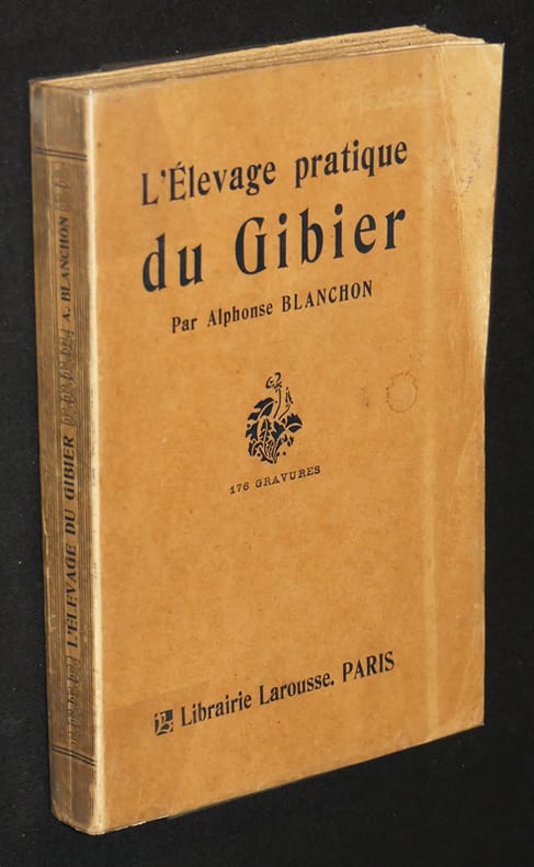 1914 Paris, Larousse, 1914 : In-8 Carré, Broché. 284 pp., 176 figures in-texte, couverture légèrement défraichie, un ouvrage très détaillé sur l'élevage des faisans, perdrix, canards, lièvres, cerfs, ... Très bon état, Couv. convenable, Dos impeccable, Non coupé.