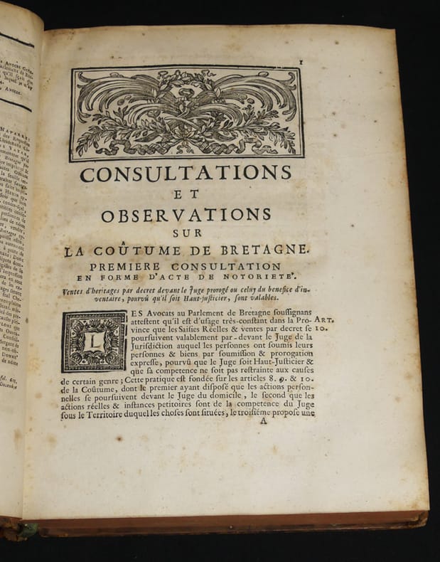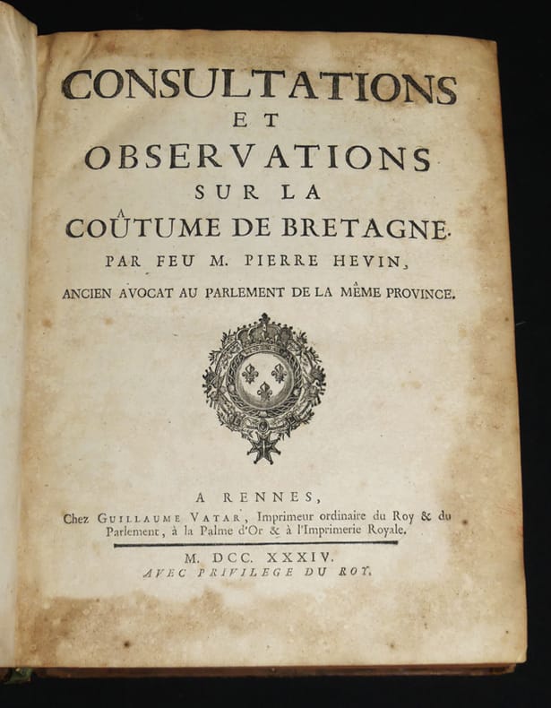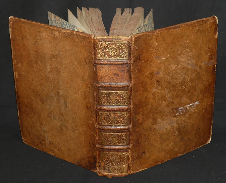 Guillaume Vatar Relié 1734 In-8 (19,7 x 25 cm), reliure plein veau d'époque, dos à 5 nerfs orné de caissons dorés, tranches mouchetées rouges, gardes couleur à la cuve, signet, ex-libris d'Olivier Le Dour en regard du titre, xiij-720 pages, rare édition originale de 1734, ornée de bandeaux, lettrines et culs-de-lampes ; pièce de titre manquante, mors partiellement fendus, manque de cuir à la coiffe supérieure et petite déchirure à la coiffe inférieure, épidermures au premier plat, des rousseurs à l'intérieur par ailleurs assez bien conservé, en l'état. Livraison a domicile (La Poste) ou en Mondial Relay sur simple demande.