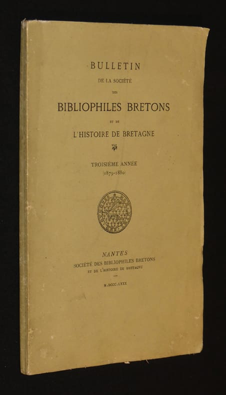 Société des bibliophiles bretons Broché 1880 In-8 (14,3 x 22,5 cm), broché, 77 pages, en partie non coupé, tirage à 400 exemplaires ; pliure au dos et dans le coin inférieur du quatrième plat, quelques frottements et traces au dos et sur les plats, par ailleurs intérieur frais, assez bon état général. Livraison a domicile (La Poste) ou en Mondial Relay sur simple demande.