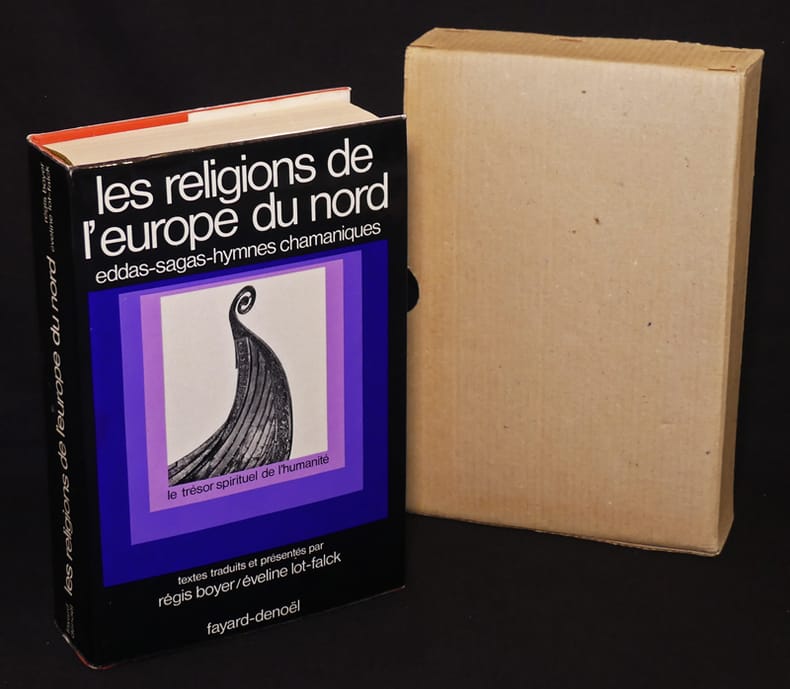 Fayard/Denoel Paris 1974 In-8 ( 240 X 165 mm ) de 744 pages, cartonnage fraise sous jaquette illustrée. Edddas - Sagas - Hymnes chamatiques. Le trésor spirituel de l'humanité. Bon exemplaire