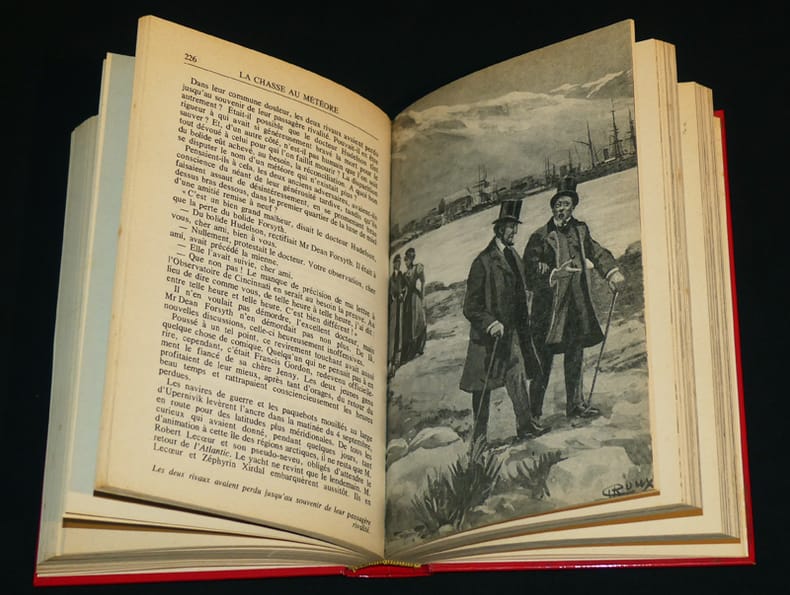 Michel de l'Ormeraie 1974 Chez Michel de l'Ormeraie, 80 volumes + 1 biographie (La Vie et l'Oeuvre de Jules Verne par Charles Noël Martin). Pour les 80 volumes : 1974 - 1982 (dépôt légal), reliures toilées de l'éditeur, environ 270x180mm, tranches dorées, chaque volume est reproduit intégralement dans la forme artistique de son époque avec les illustrations de l'époque. Dorures des dos un peu passées et dos décolorés pour certains volumes . Bel état néanmoins et intérieurs très propres.Pour la biographie : 1978 (dépôt légal), 289 p., cartonnage éditeur sous jaquette, environ 270x175mm, avec le fac simile de l'affiche publicitaire d'étrennes des éditions Hetzel consacrée aux Voyages extraordinaires. Jaquette en mauvais état. Intérieur bien propre.