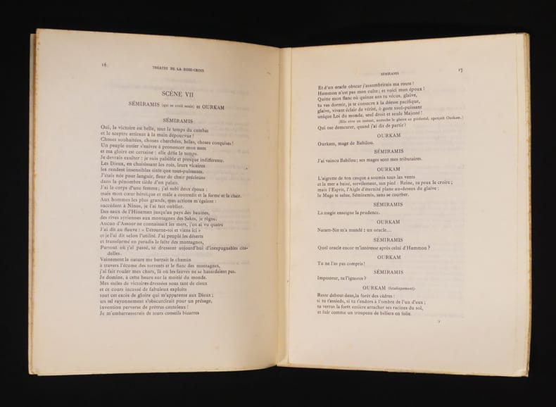 Lettre autographe signée de Joséphin Peladan adressée à Marius Richard, le père de Carlo Rim ( 41 lignes à l'encre noire, 2 pages sur un feuillet recto-verso). Le Sâr donne ses dernières indications pour la crétaion de son Sémiramis dans l'amphithéâtre antique de Nîmes dirigé par Marius Richard. Petites rousseurs en marges de la lettre, traces de pliures inhérentes à la mise sous pli. "Mon cher confrère, Je vous remercie de me rassurer enfin, sur la scène. Je vous écrivais ce matin encor à ce sujet. Voici l'indication pour les quatre spectacles le Sacrifice, la Fête de Tammuz, La Pyrrhique & l'Aruspice à intercaler dans la tragédie. Cela suffit au comité pour comprendre qu'il est le maître de cette partie & j'emploierai les moyens qu'on me donnera. Non, au II, Sémiramis arrive en blanc, après la fête de Tammuz & s'assied sur un banc qu'on empruntera au théâtre municipal. Je suis très heureux du choix des adjoints ; particulièrement de la présence de Placide. Vous voulez plus de figurants qu'à Orange ? Ce n'est pas à moi de le fixer. Dès que vous m'aurez dit le nombre je m'occuperai des costumes. J'entends bien qu'il faut faire bon marché & sans fignolage ; mais comme je dois les exercer avec leurs armes cela augmentera le prix. Comptez dix répétitions de figuration avant les trois d'ensemble avec les interprètes. Je calcule ma mise en scène sur les 20 mètres de décor en hauteur pour utiliser ce décor & ferai jouer partout , ce sera décoratif. D'après la maquette la scène aurait 37 mètres d'ouverture, celle d'Athènes n'en a que vingt cinq. J'aurai besoin d'une photographie du décor en place en hâte pour vous répondre par courrier. Tout votre Péladan." - Photographies et détails sur www.Edition-Originale.com -