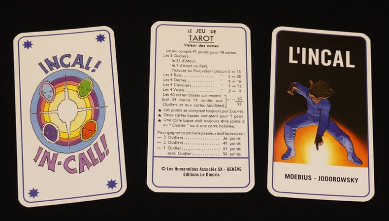 Editions Le Diouris Jeu de cartes "Jeu de tarot ""L'Incal"", édition limitée à 2500 exemplaires numérotés (ici le n°2004), bien complet ; quelques frottements sur l'étui, par ailleurs bel état. Livraison a domicile (La Poste) ou en Mondial Relay sur simple demande."