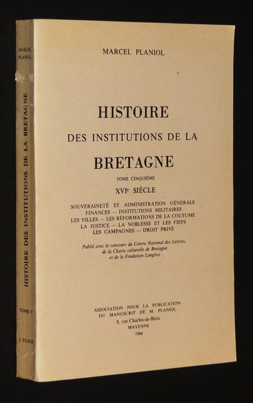 Association pour la publication du manuscrit de M. Planiol Broché 1984 In-8 (15,8 x 24 cm), broché, 382 pages, tome 5 seul, avec une carte volante de Bretagne pour l'histoire des XVIe, XVIIe et XVIIIe siècles ; pliures et éraflures au dos, par ailleurs bon état général. Livraison a domicile (La Poste) ou en Mondial Relay sur simple demande.